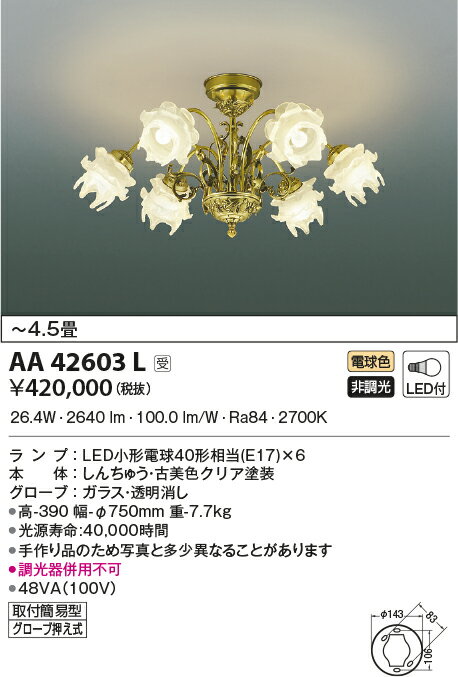 AA42603L コイズミ照明 ilum Antirose アンティローズ 直付シャンデリア [LED電球色][〜4.5畳] シャンデリアメーカー希望小売価格はメーカーカタログに基づいて掲載しています。