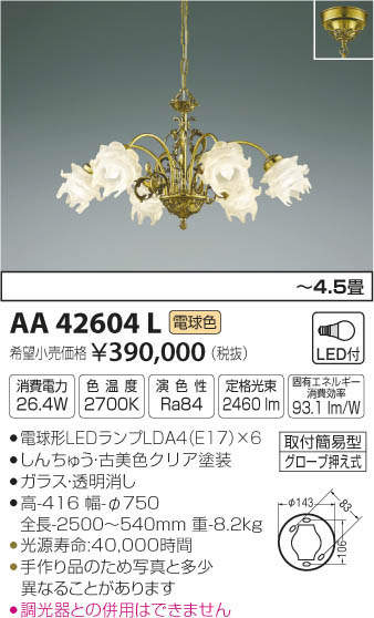 商 品 詳 細商品名コイズミ インテリア 屋内 照明メーカー名コイズミ KOIZUMIメーカー器具名称シャンデリア(装飾照明)仕様サイズ高-416 幅-φ750 全長-2500〜540mm 重-8.2kg補足・注意事項◆消費電力:26.4W◆色温度:2700K◆演色性:Ra84◆光源寿命:40,000時間◆手作り品のため写真と多少異なることがあります◆調光器との併用はできません※色温度:2700K注意事項◆写真方向以外取り付け不可 ※施工・電気工事は専門業者にご依頼ください。