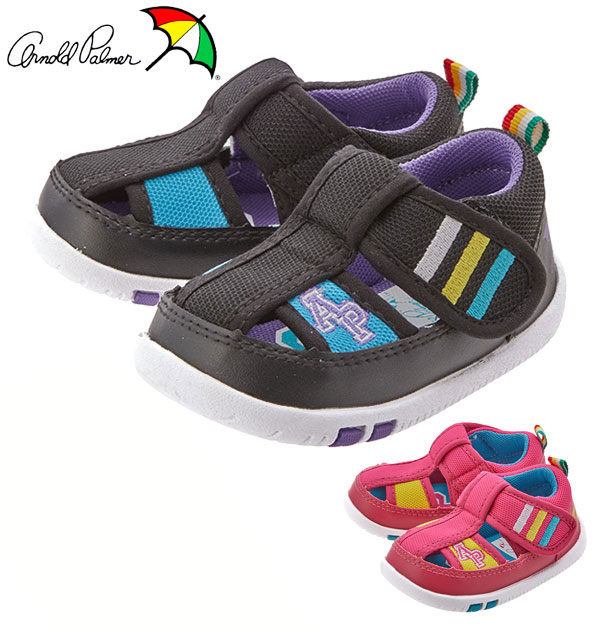 ベビーサンダル アーノルドパーマー Arnold Palmer ベビー サンダル ベビーシューズ ブラック ピンク 12.5〜14.5 cm 定番 プレゼント ギフト 男の子 女の子 12.5〜14.5 cm つま先ガード おしゃれ かわいい 軽量 ベルクロ マジックテープ 子供 靴 AP4181? AP1 co-1062049